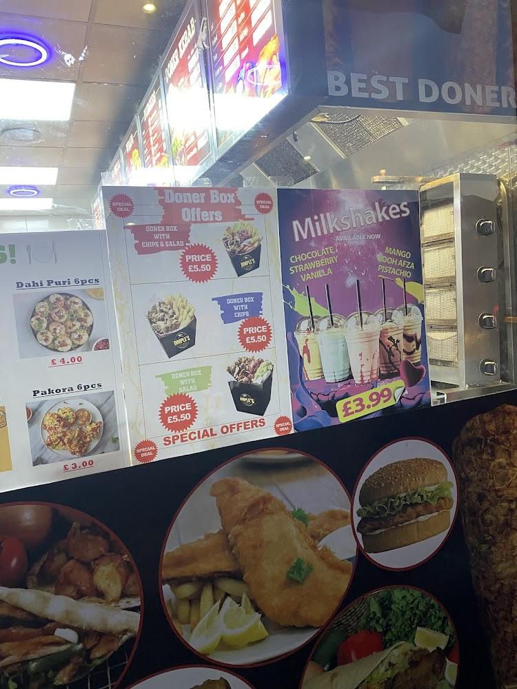 The menu is a delightful mix of classic and intriguing dishes, featuring top-notch fish and chips, alongside flavorful doner options. This place buzzes with life, especially during peak hours, catering to lunch and dinner crowds alike.